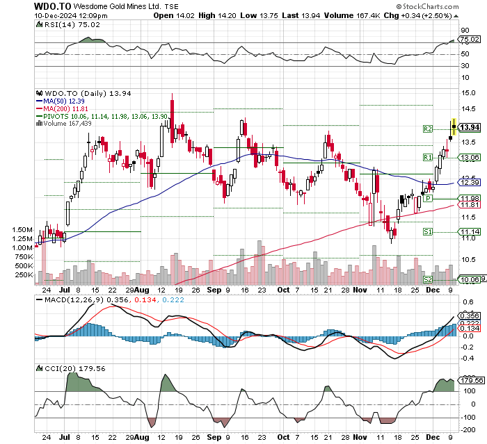 "Wesdome Gold Mines (TSX: WDO) bekräftigte am Donnerstag nach der Veröffentlichung der Betriebsergebnisse für das dritte Quartal, dass das Unternehmen weiterhin auf dem Weg zu einem Rekordjahr bei der Produktion ist. Die Aktie des Unternehmens stieg bis 14:15 Uhr in Toronto um 2,7 %, was einer Marktkapitalisierung von 1,94 Mrd. C$ (1,4 Mrd. $) entspricht.