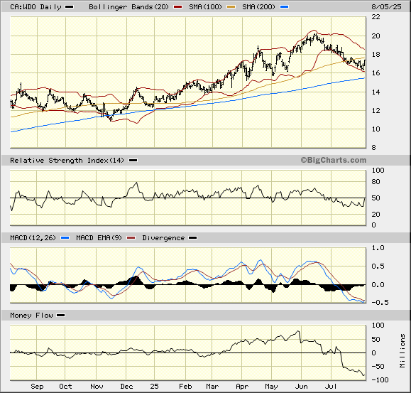 Auch andere Goldene erreichten ATHs, so zuletzt Agnico, Kinross oder Torex, auch die Royalties Franco-Nevada und Wheaton, aber keine war so tief gefallen wie WDO auf fast 1/3 des alten ATH.