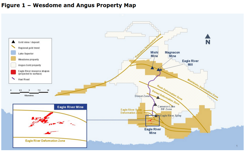 "Wesdome gibt heute ein Update zu seinen Explorationsaktivitäten in seiner hundertprozentigen Mine Eagle River („Eagle River”) in der Nähe von Wawa, Ontario, Kanada (Abbildungen 1 und 2).