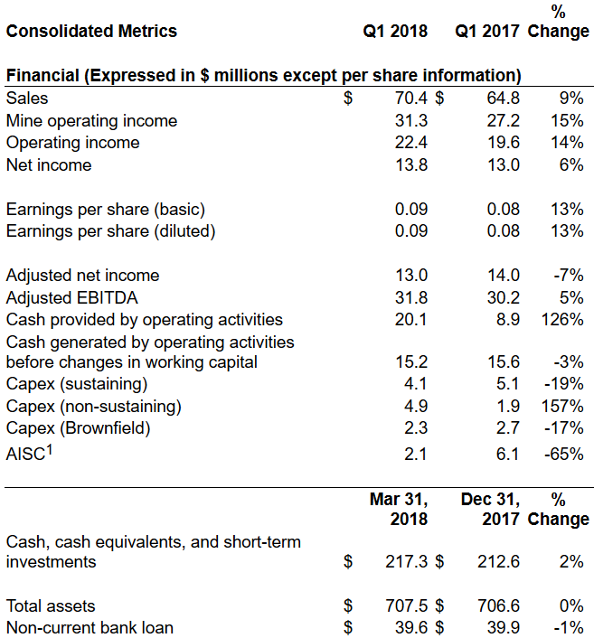 - The company cut costs of production at its two operating mines; it is also on the right track to meet its production guidance for 2018.