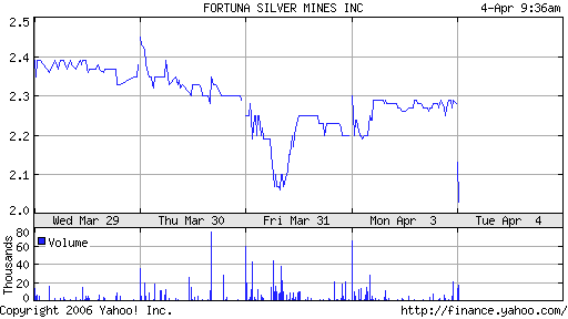 VANCOUVER, BRITISH COLUMBIA--(CCNMatthews - March 31, 2006) - Fortuna Silver Mines Inc. (TSX VENTURE:FVI - News). Mr. Jorge Ganoza Durant, the President of Fortuna, is pleased to report the Company is on track to produce the first silver at its 100% owned Caylloma mine in Peru, with milling of ore expected to start by the third quarter of 2006.