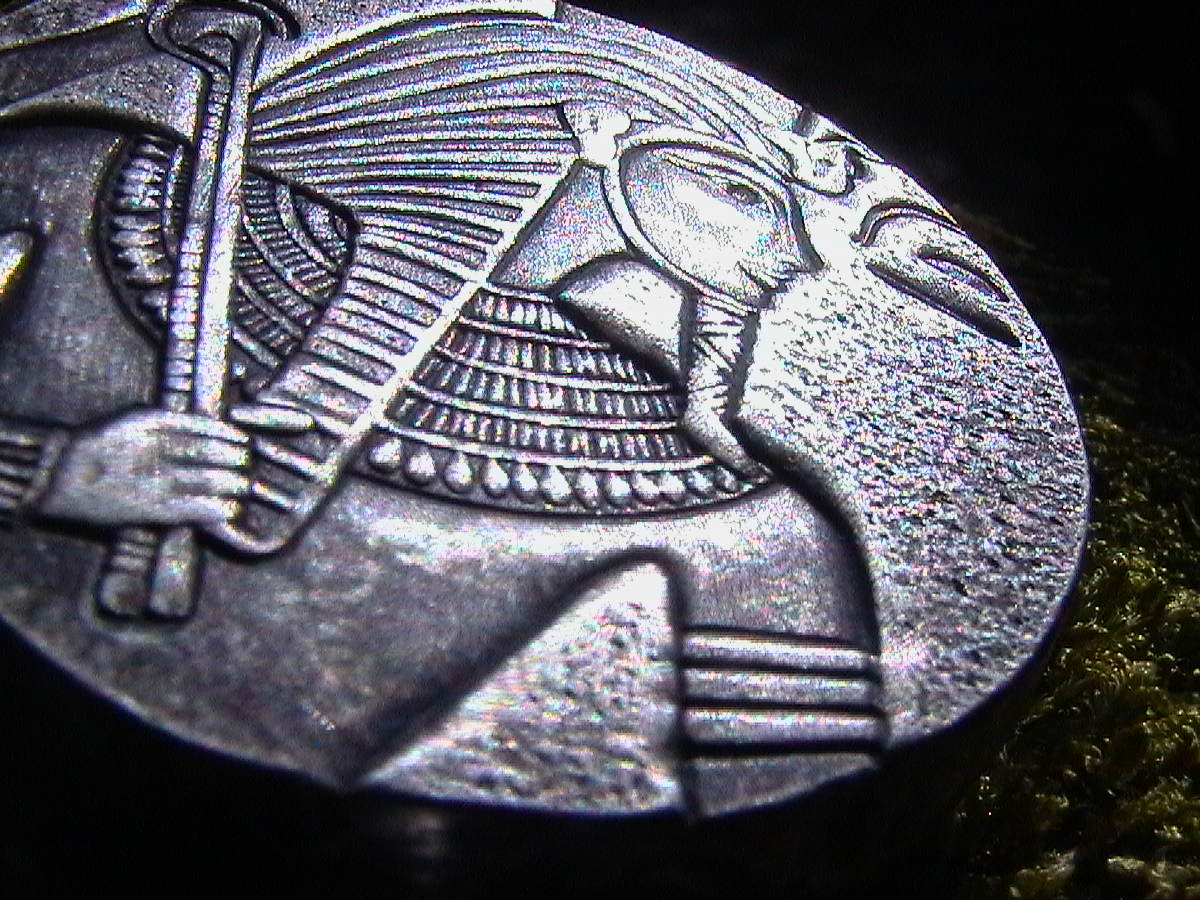 Der Durchmesser des Horus (4 cm) steht dem, der Tut - Münze (41mm) in Nichts nach.