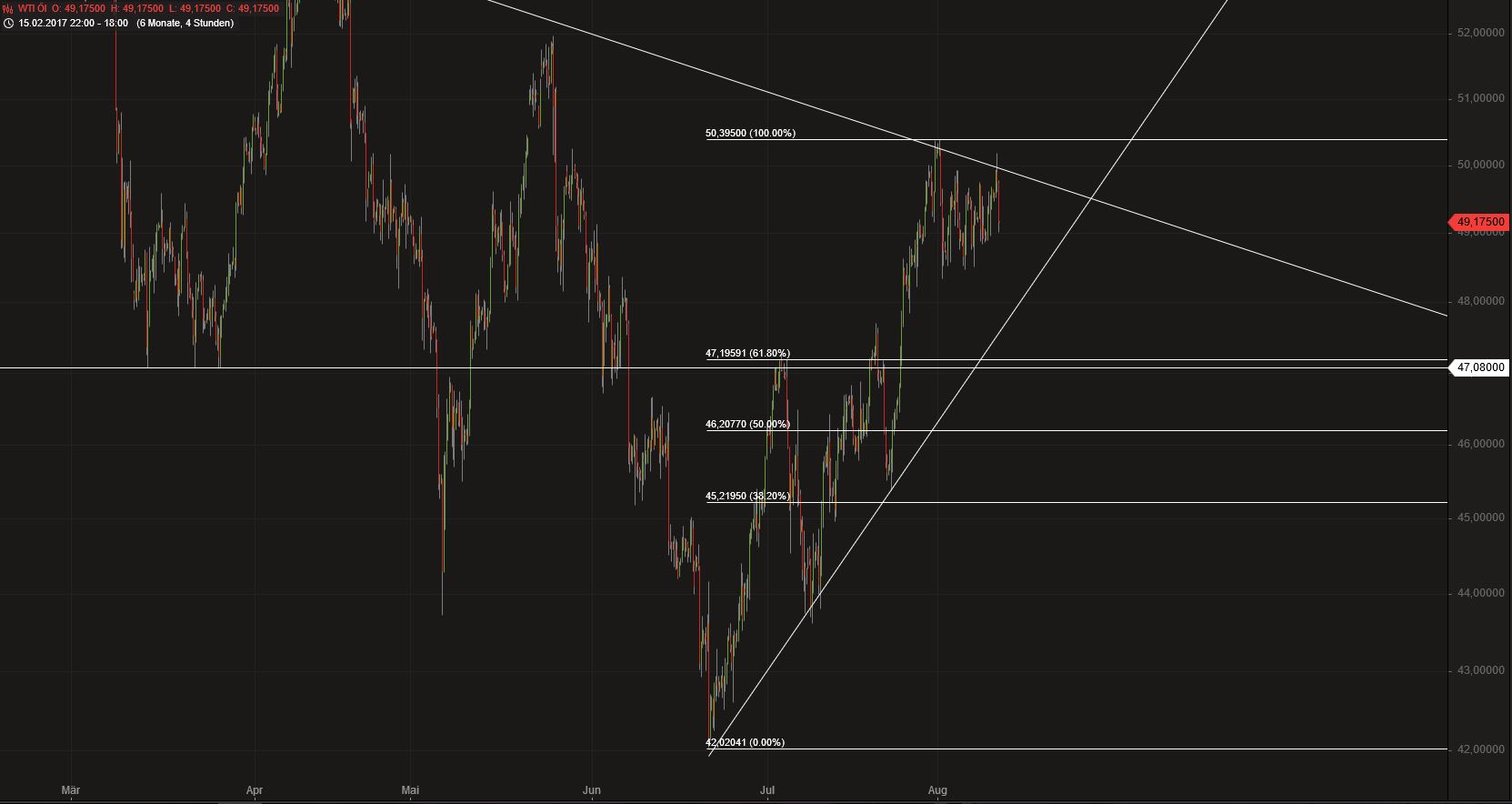 Die 50,20$ haben mal wieder gehalten, die zweite Stundenkerze hat es nur noch zur 50,18$