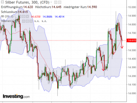 Das war aber vor der dynamischen Bewegung auf 14.90 im Hoch und dem Rückerobern der 1200+ im Gold. Jetzt sehe ich Silber ausreichend bullish, dass wir wahrscheinlich über 14,60 den kleinen Rücksetzer verdauen, um von hier weiter dynamisch > 15 und absehbar auf 17 zu gehen.