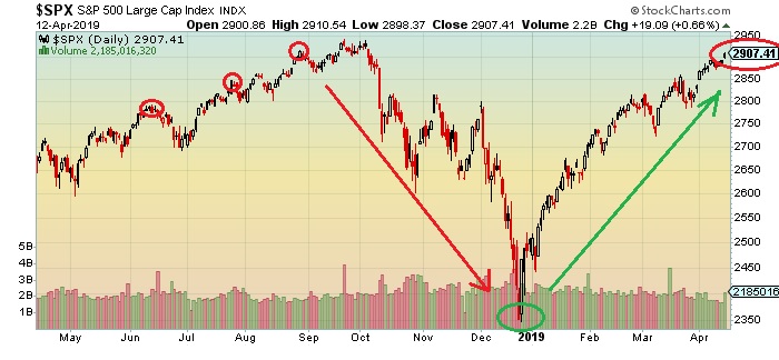 Der Anstieg bei den US-Indices seit Heiligabend 2018 kann man beim besten Willen nicht korrektiv zählen. Bekanntlich ging ich von einer deutlichen jedoch korrektiven Aufwärtsbewegung ins neue Jahr 2019 (Januar/Februar) aus, um anschließend in Welle 3 abzustürzen. Offensichtlich ist das ja bislang nicht eingetreten. Der Hauptgrund dafür wird wohl in der 135 ° Wende bei der Geldpolitik der FED und den Entspannungen in Sachen Handelsstreit mit China liegen.