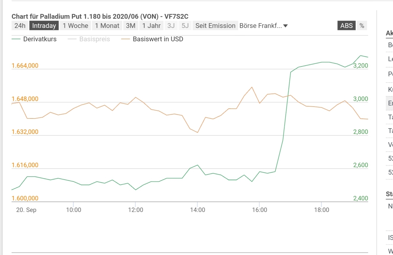Nun ist mittlerweile der Palladiumpreis kräftig gestiegen (auch Hedda wurde ausgestoppt, siehe ihr Depotfaden).Jetzt kommt's: wenn man sich jetzt den OS ansieht ist er heute gewaltig mit Palladium gestiegen obwohl er ein Put OS ist...