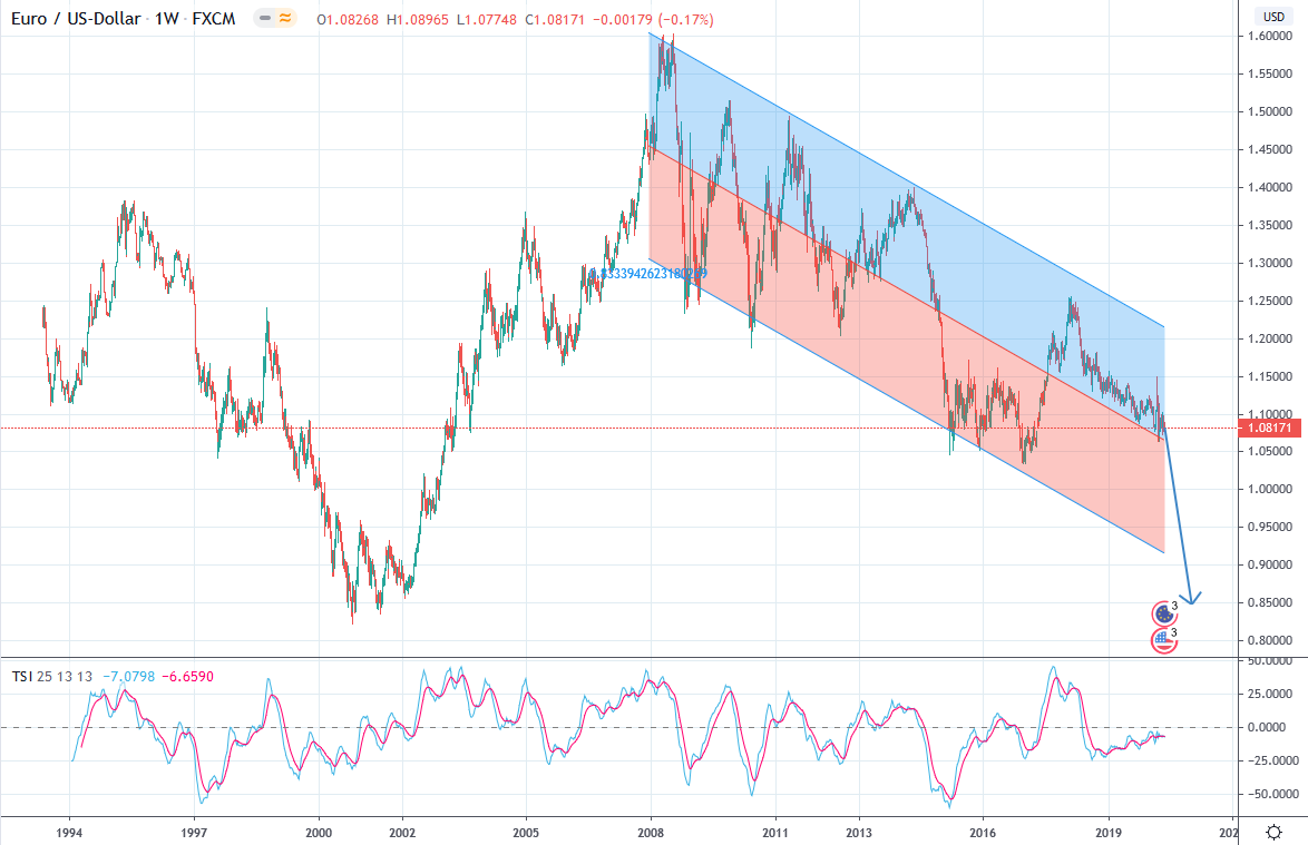 Für mich ist ganz klar, dass der Euro vor dem USD untergehen wird. Der Chart von @Deflationator sieht auch gefährlich aus.