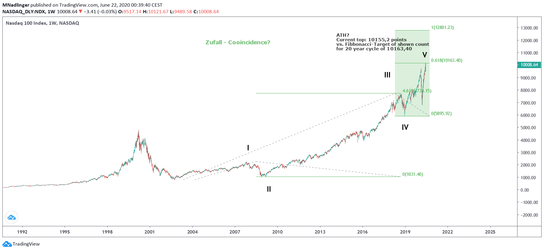 Die Fibbonaci-Proportion fürs finale Top würde weniger als 1 Promille abweichen. Wenn das stimmen sollte steht noch ein größerer Kurssturz locker in die Nähe zwischen Hoch aus 2000 bei 4800 Punkten und Welle IV bei 5900 Punkten bevor.