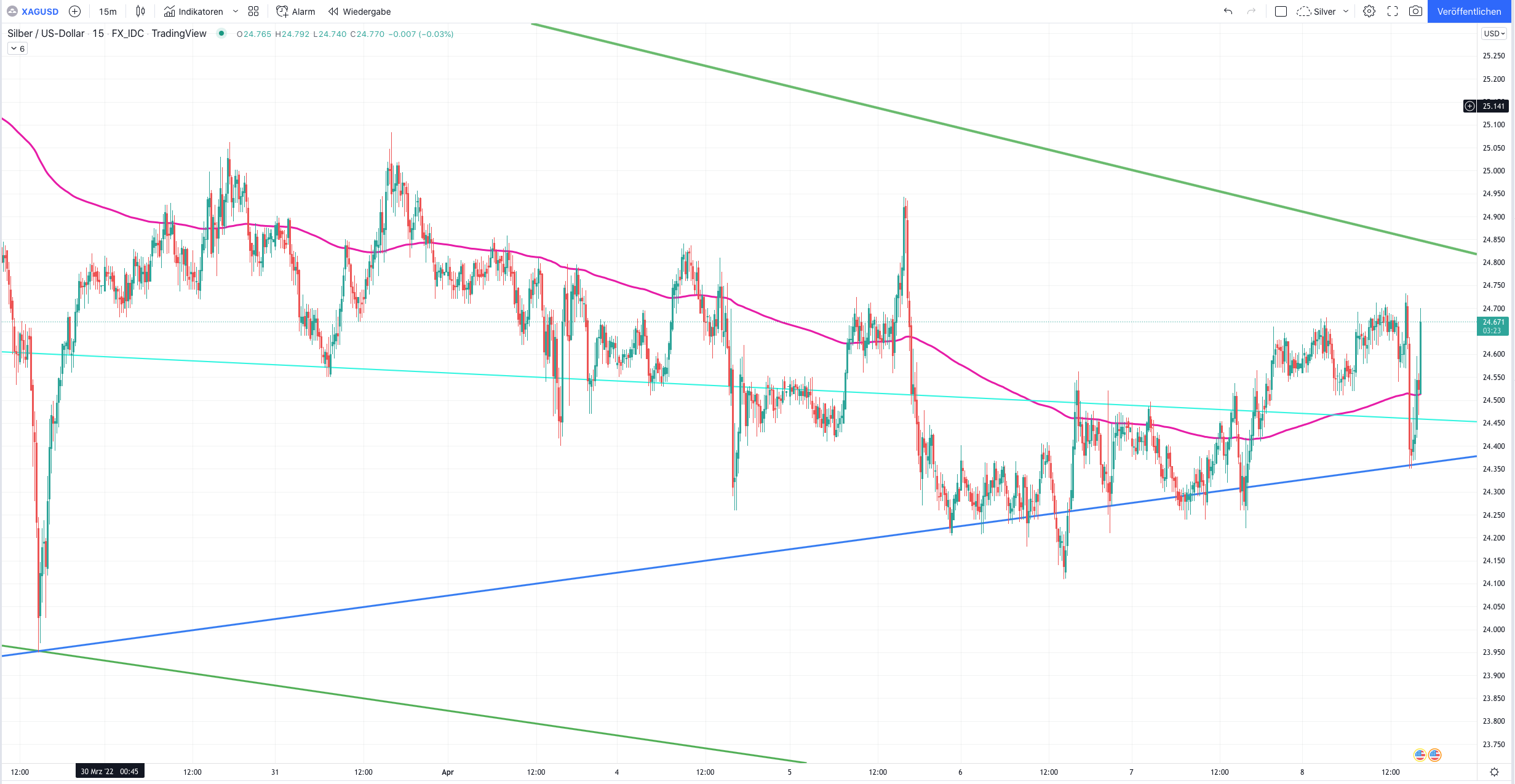 Ich hab jetz jeweils die Hälfte aller sieben eröffneten Positionen im 24.xx-Bereich verkauft. Rest hat SL beim Entry.