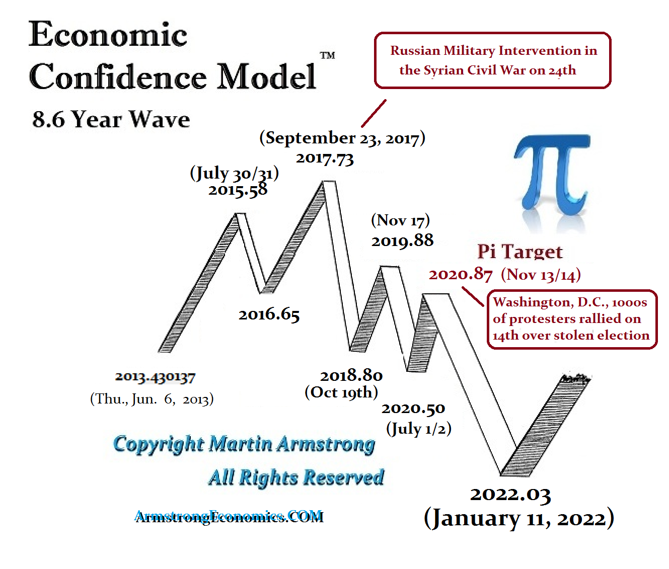 Doch es gibt noch etwas anderes, das von enormer Bedeutung ist. Sokrates war bei den langfristigen Trends und Ereignissen praktisch unfehlbar. Ich habe verstanden, dass es so viele mögliche Variationen in den täglichen Trends gibt, aber das ändert nichts an den langfristigen Trends. Sie hat die Finanzpanik im Jahr 2008 10 Jahre im Voraus vorhergesagt. Wie können sich so viele Ereignisse bis zum Tag des Economic Confidence Model entfalten? Ich kann nur sagen, dass diese Ereignisse, die nichts mit meiner persönlichen Meinung zu tun haben, bestätigen, dass es eine verborgene Ordnung der Komplexität gibt, die das bloße menschliche Auge unmöglich sehen kann. Es gibt einfach viel zu viele Ereignisse, die sich genau am Tag eines Ziels abspielen, als dass es sich um einen Zufall handeln könnte. Es gibt eine viel größere Ordnung, die existiert, und die Leute werden diese Vorhersagen verunglimpfen, weil sie denken, dass sie nur deshalb funktionieren, weil wir einen riesigen Kundenstamm haben. Hinter all dem steckt einfach mehr als die menschliche Meinung.