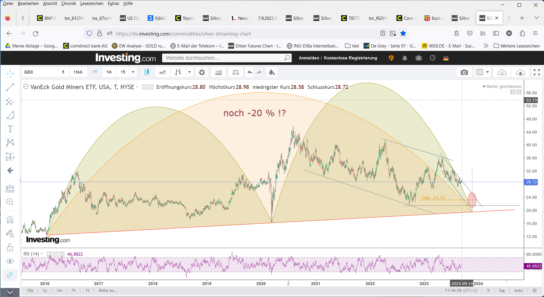 Und weil wir gerade dabei sind, hier noch ein paar andere führende Indizes/Minenwerte mit meinen Erwartungen :