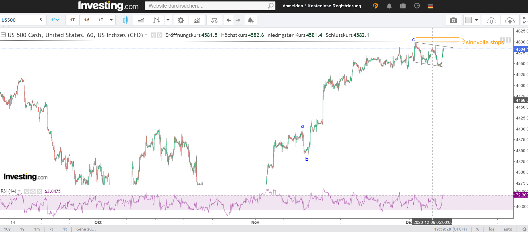 beachte : Der DAX hat das alte Hoch überwunden ! Es besteht also die Gefahr, daß der S+P 500