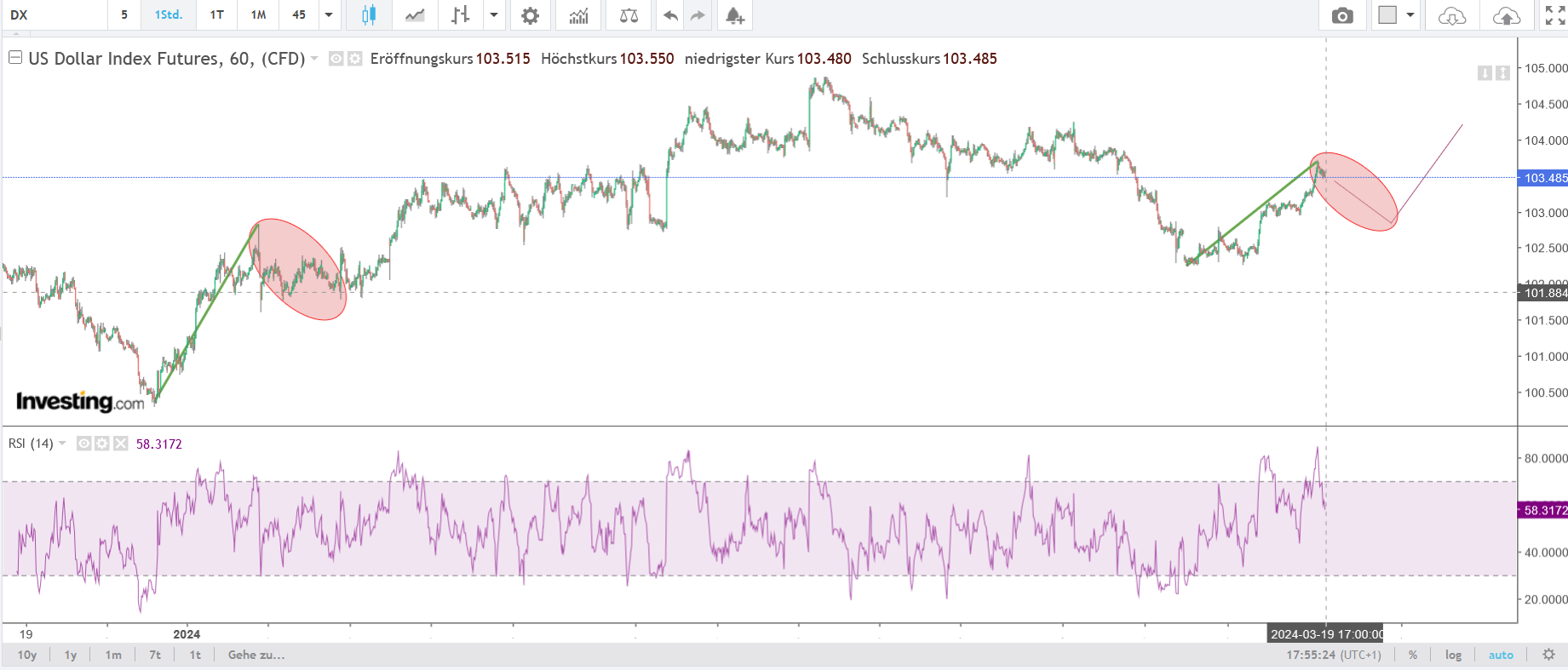 zusammen charttechnisch an einer TOP-Formation (einem Dreizack !) mit Spitzen am 1.3./7.3./12.3.