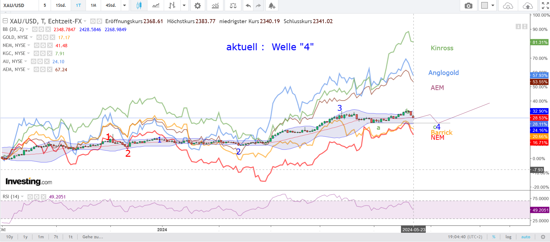 Ich sehe die EM/Minen noch etwas weiterkorrigieren - aber nur seicht, anschließend weitersteigen...