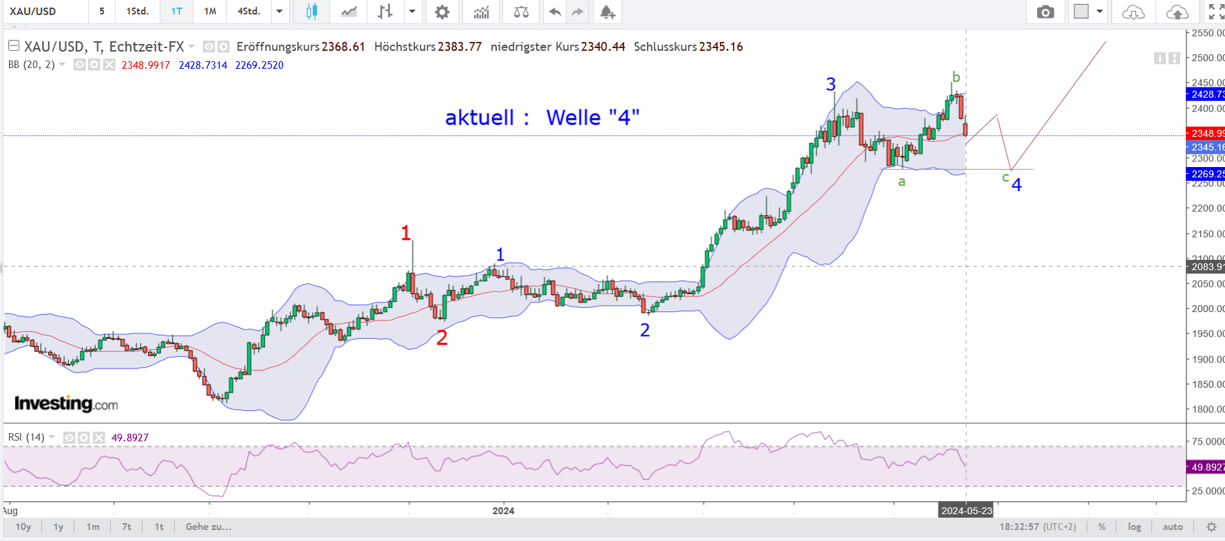 nachdem wir die 2275 $ im Gold nochmal anlaufen, .....habe aber die korrektive Entwicklungsmöglichkeit im Hinterkopf, auf die ich vorbereitet sein will.