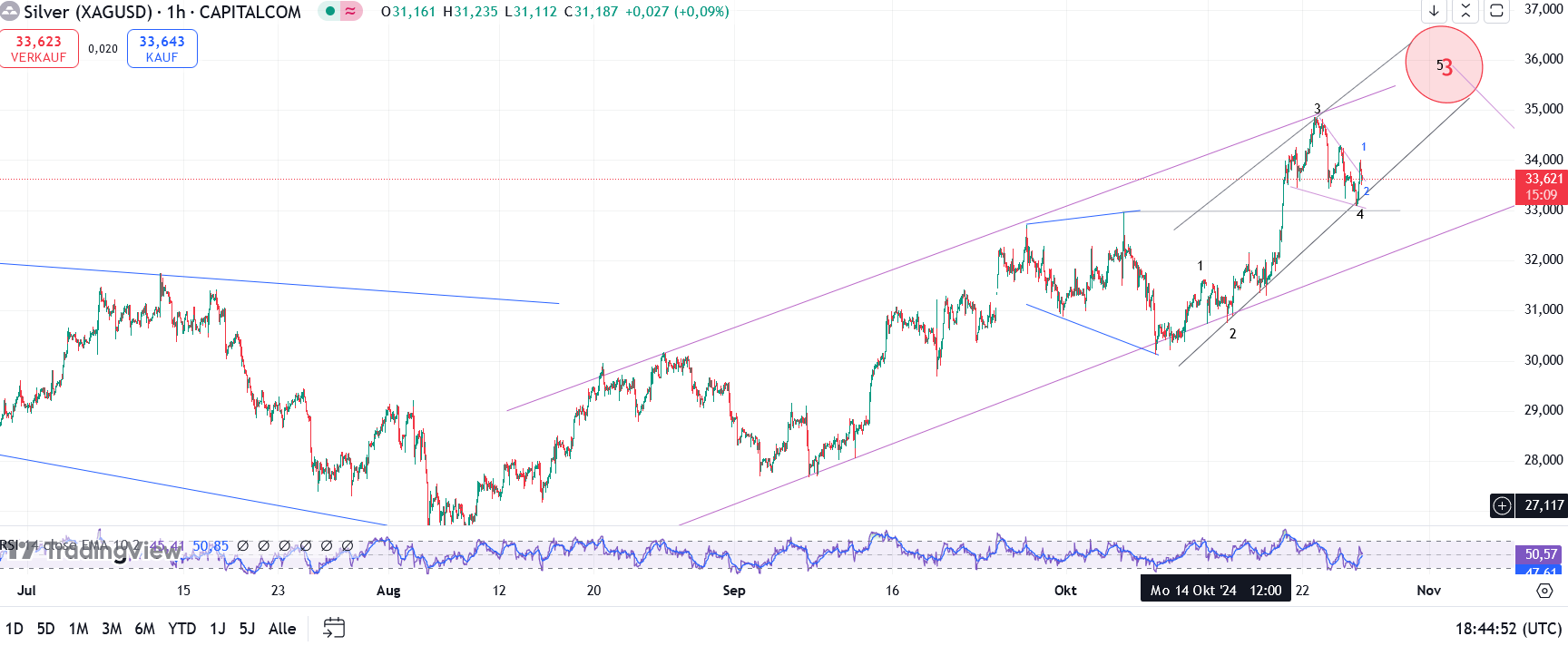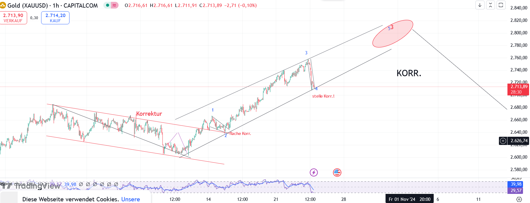 (Leider hatte ich Welle 2 als steil identifiziert und somit eine flache Korr. erwartet !