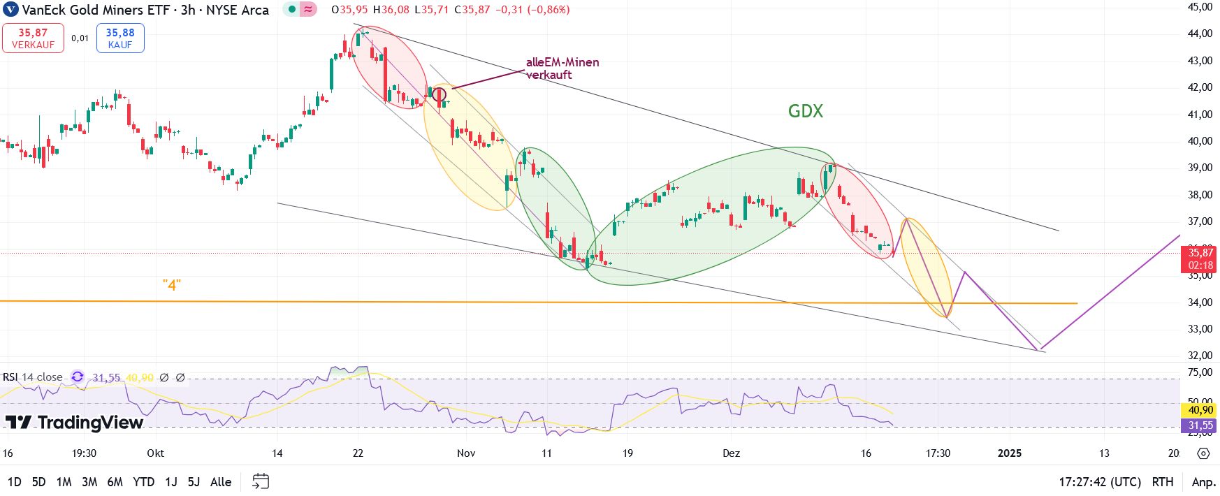 Die Minen sind aber gut vorausgelaufen, so daß sie schon lt. GDX-Chart Kaufzonen-Niveau hatten.