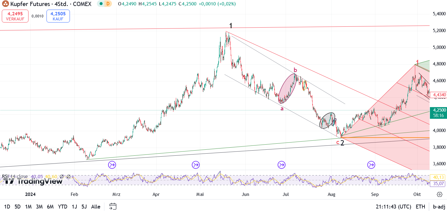 Der Punkt 2 im Chart ist der Monatswechsel. Hier sollten wir idealerweise beim Kupferpreis 4,15 $