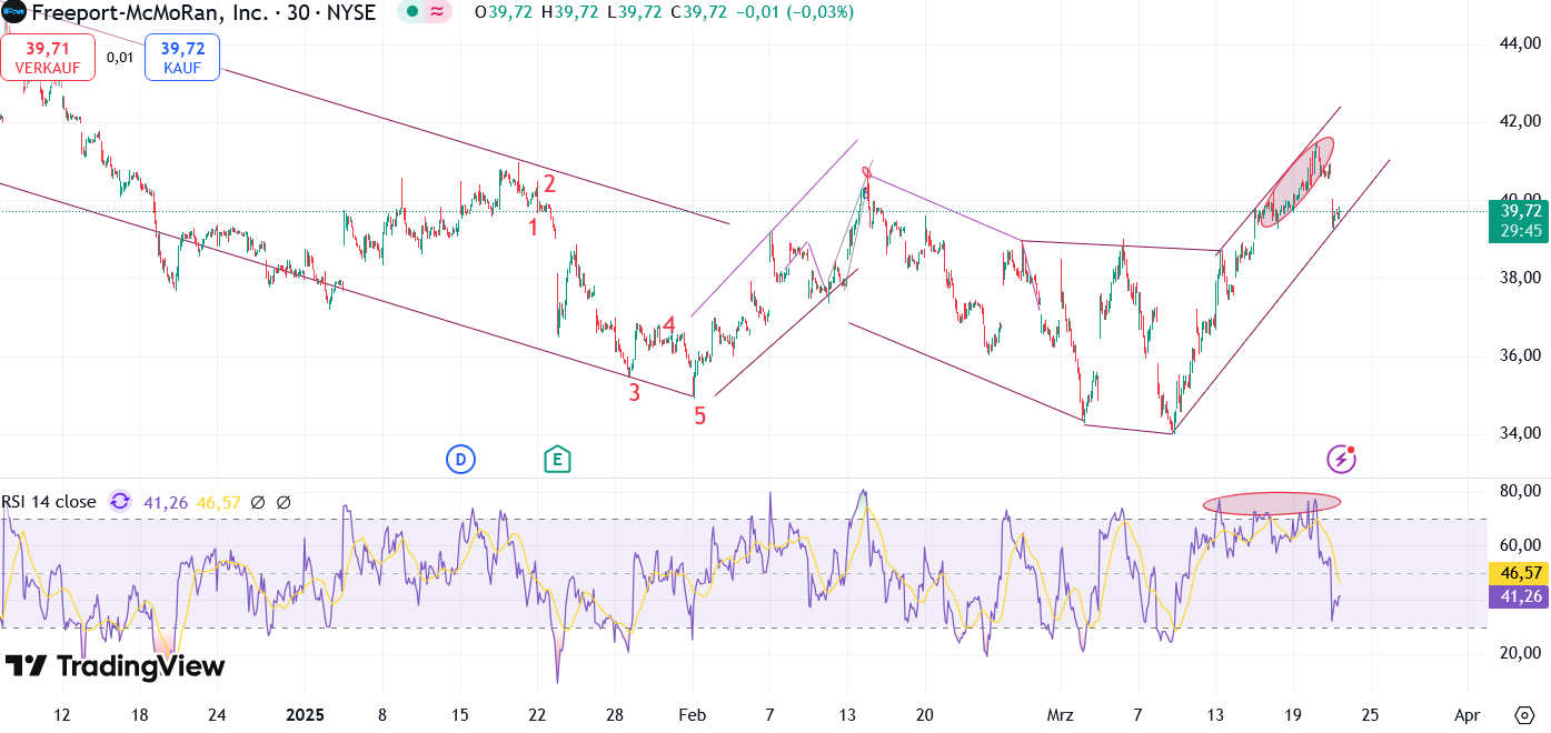FCX läuft zwar auch gut (heute +3 %), kann aber trotz Hebel 2 zum Kupfer nicht mithalten.