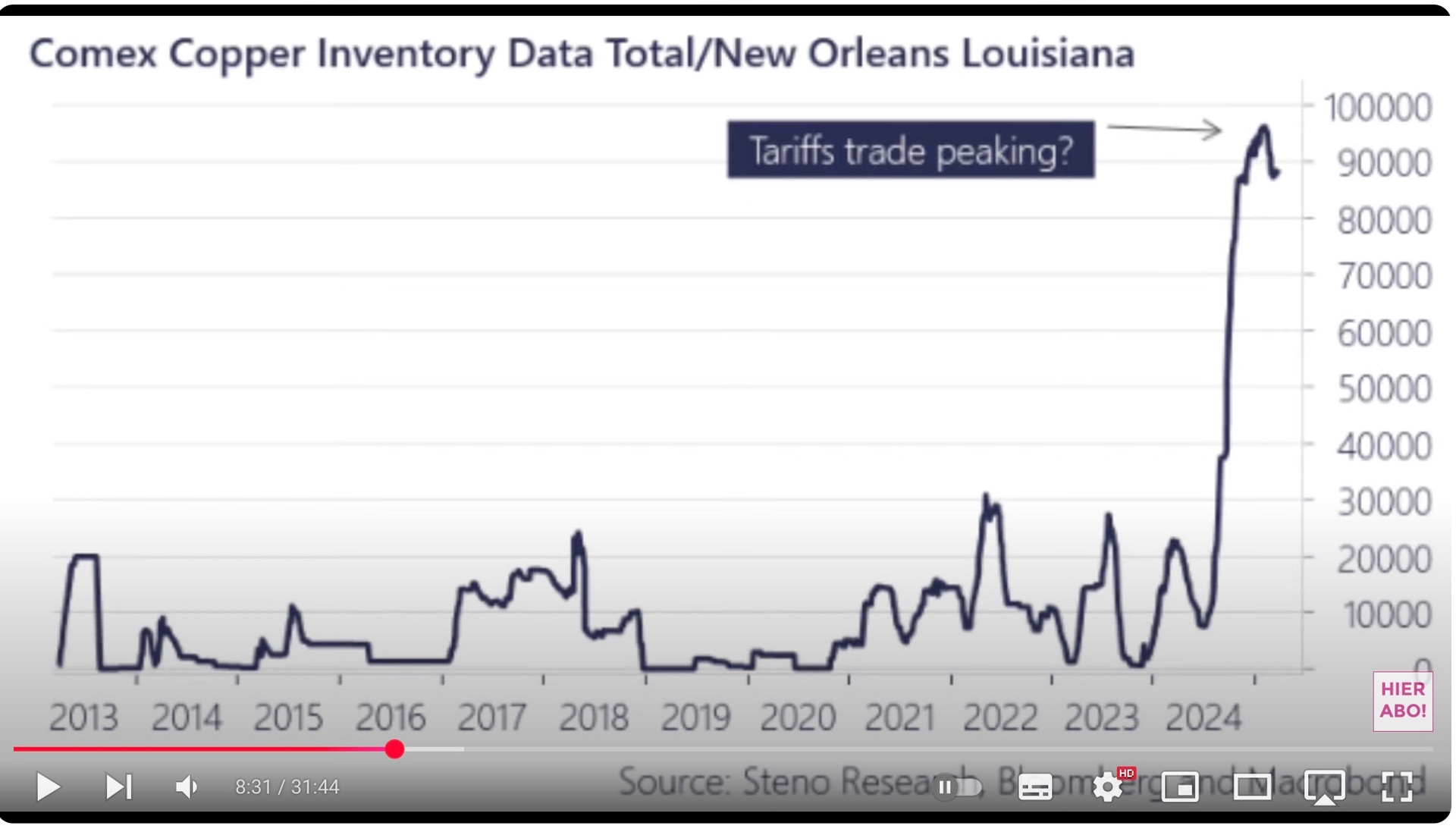 Ich lese ihn auch so : Am Jahresende 2024 gab es den rekordhohen Lagerbestand bei Kupfer.......