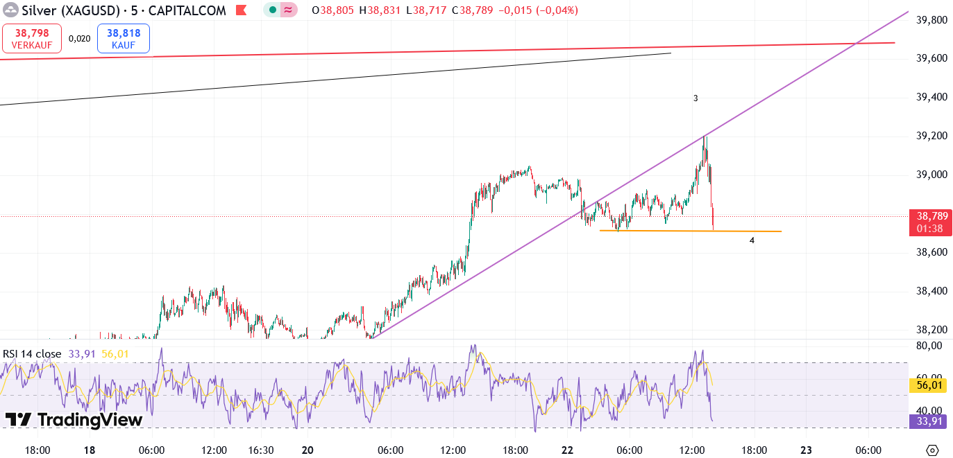 Alles anzeigenGewinnmitnahme im Silbershort bei 38,74 $ (vermutl. Welle 4) mit +48 % !