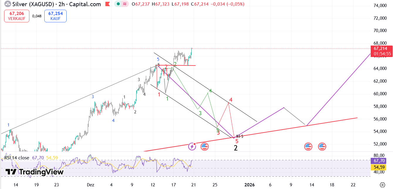 In beängstigendem Tempo rennen wir auf das vorläufige Ende der Welle 3 im Silber zu.