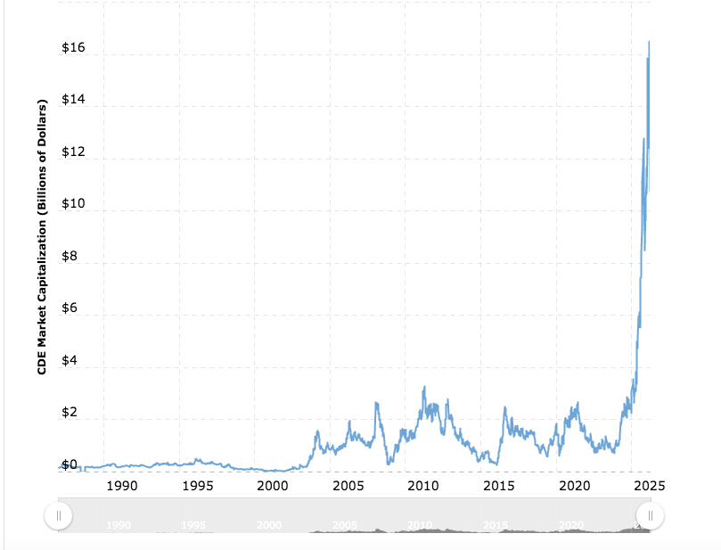 Hier ein Langzeitchart von macrotrends.nethttps://www.macrotrends.net/stocks/charts/CDE/coeur-mining/stock-price-history