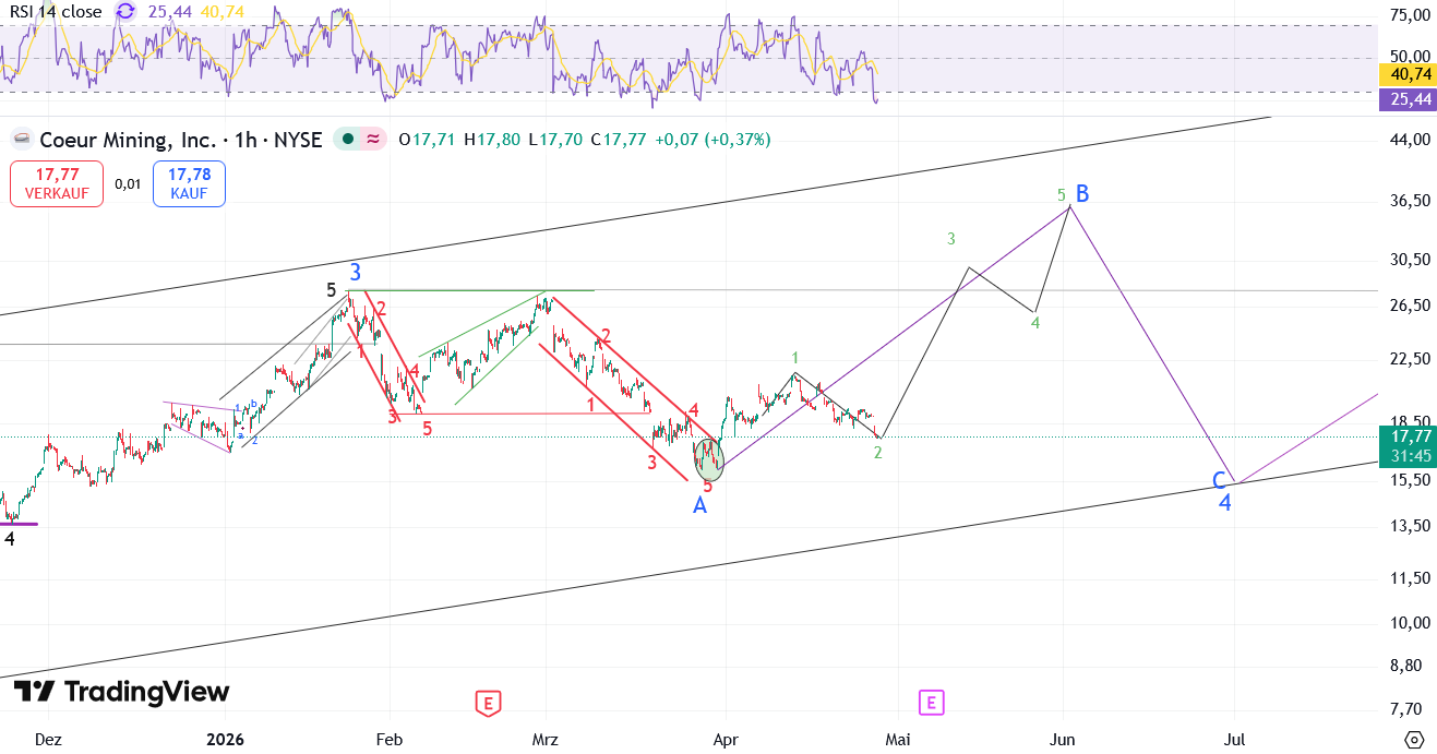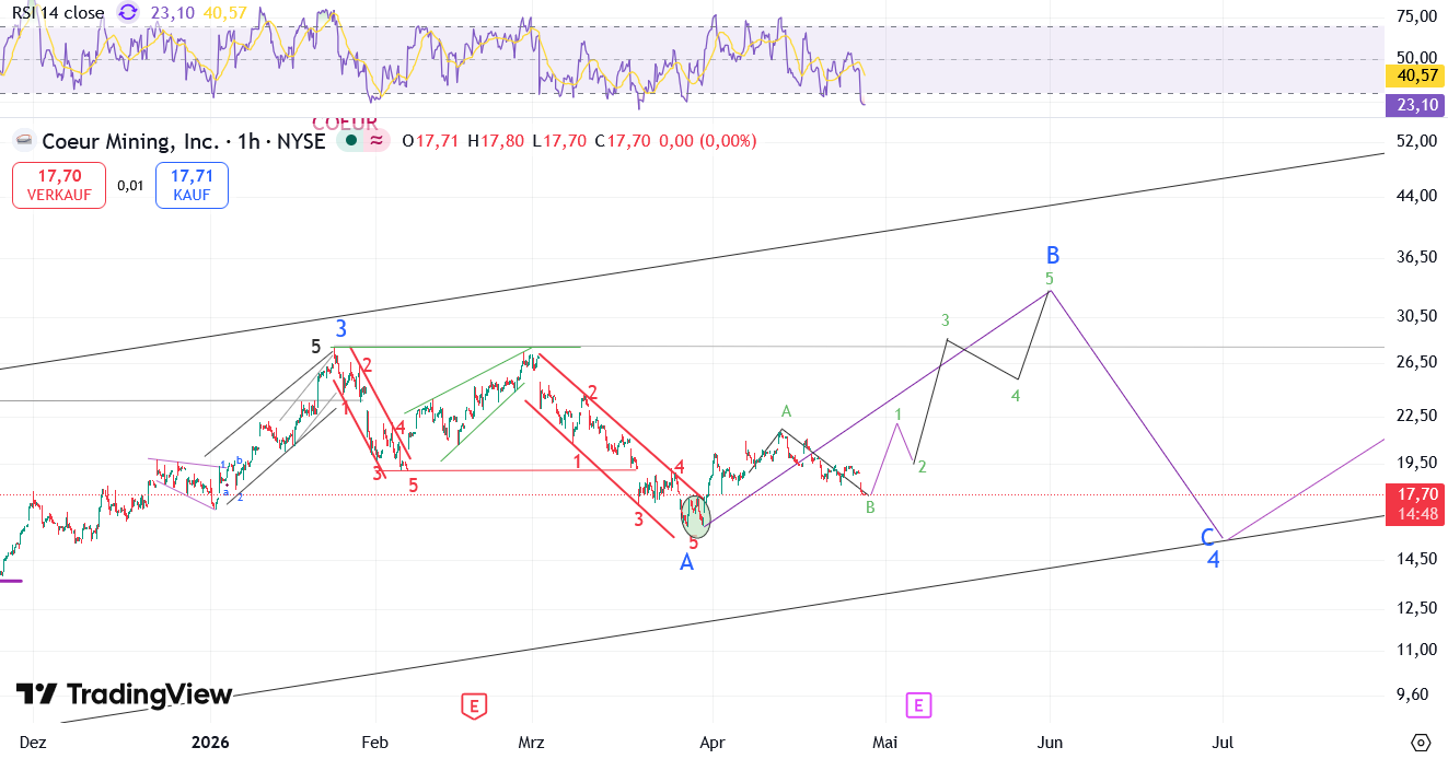 Ziel für einen NK in Coeur liegt bei 15,35 Euro und bei WPM 105 Euro.