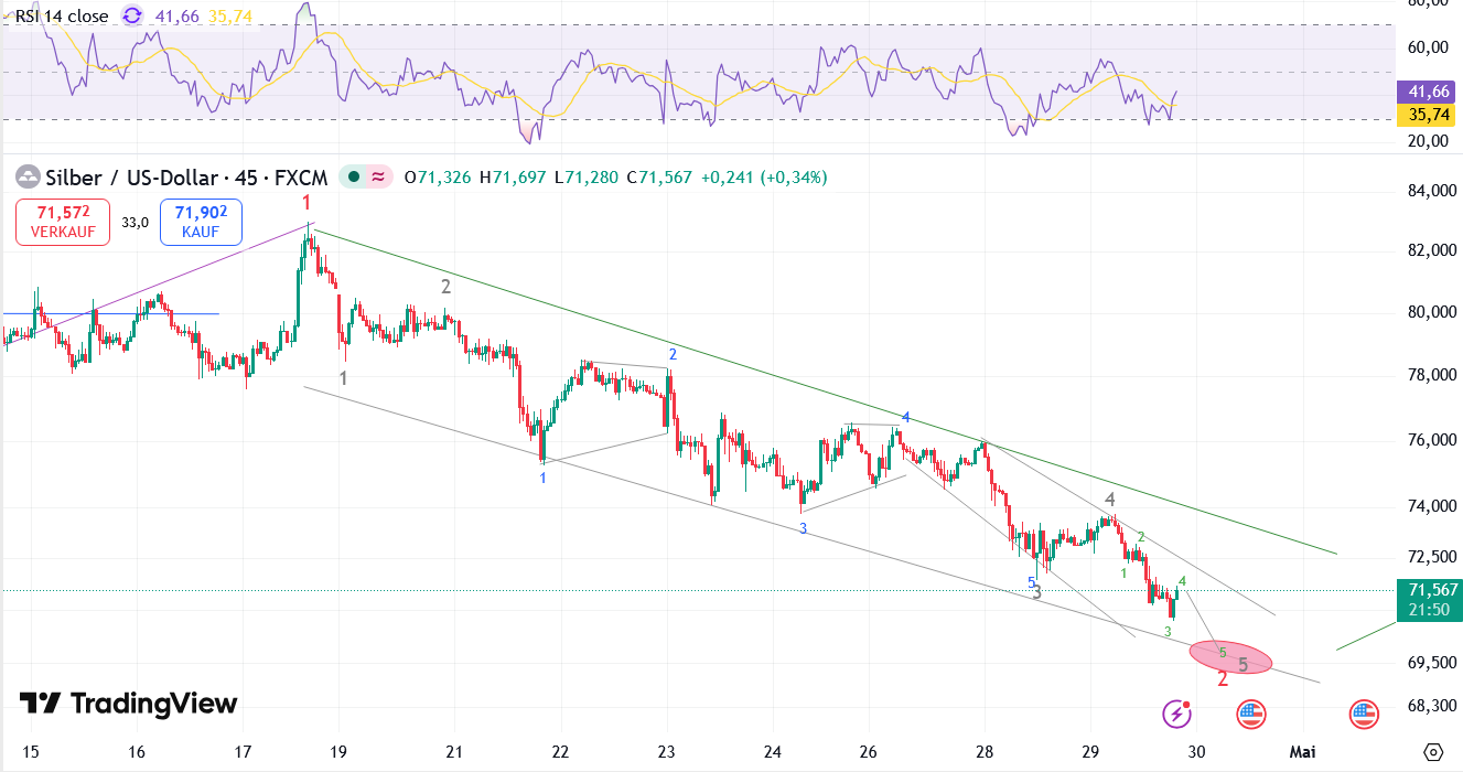 Beim Silber befinden wir uns nun in der letzten Abwärtswelle und haben da auch schon 2 Drittel absolviert.