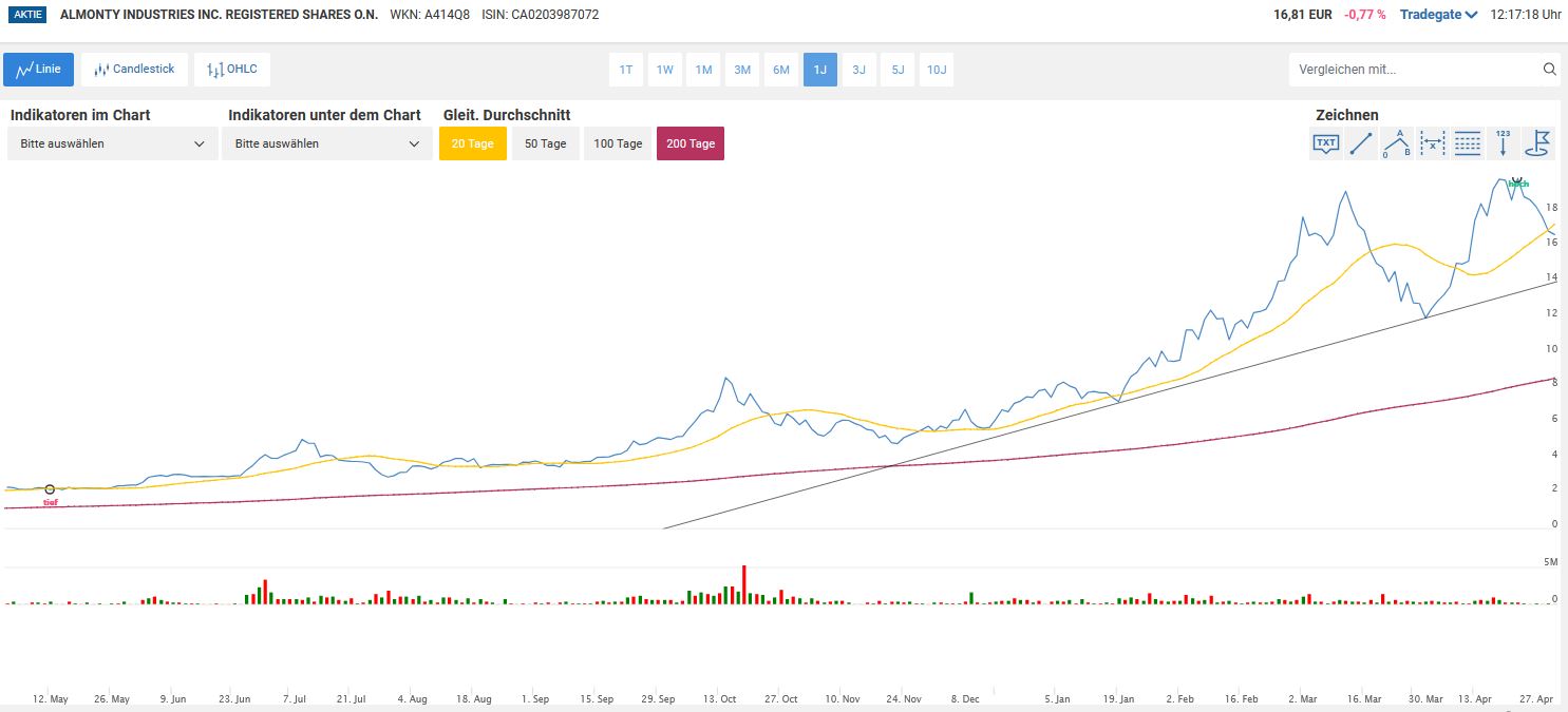 derzeit ähnlich korrigiert, wie Kinross und NEM, also vermutl. nicht viel weiter korrigieren sollte.