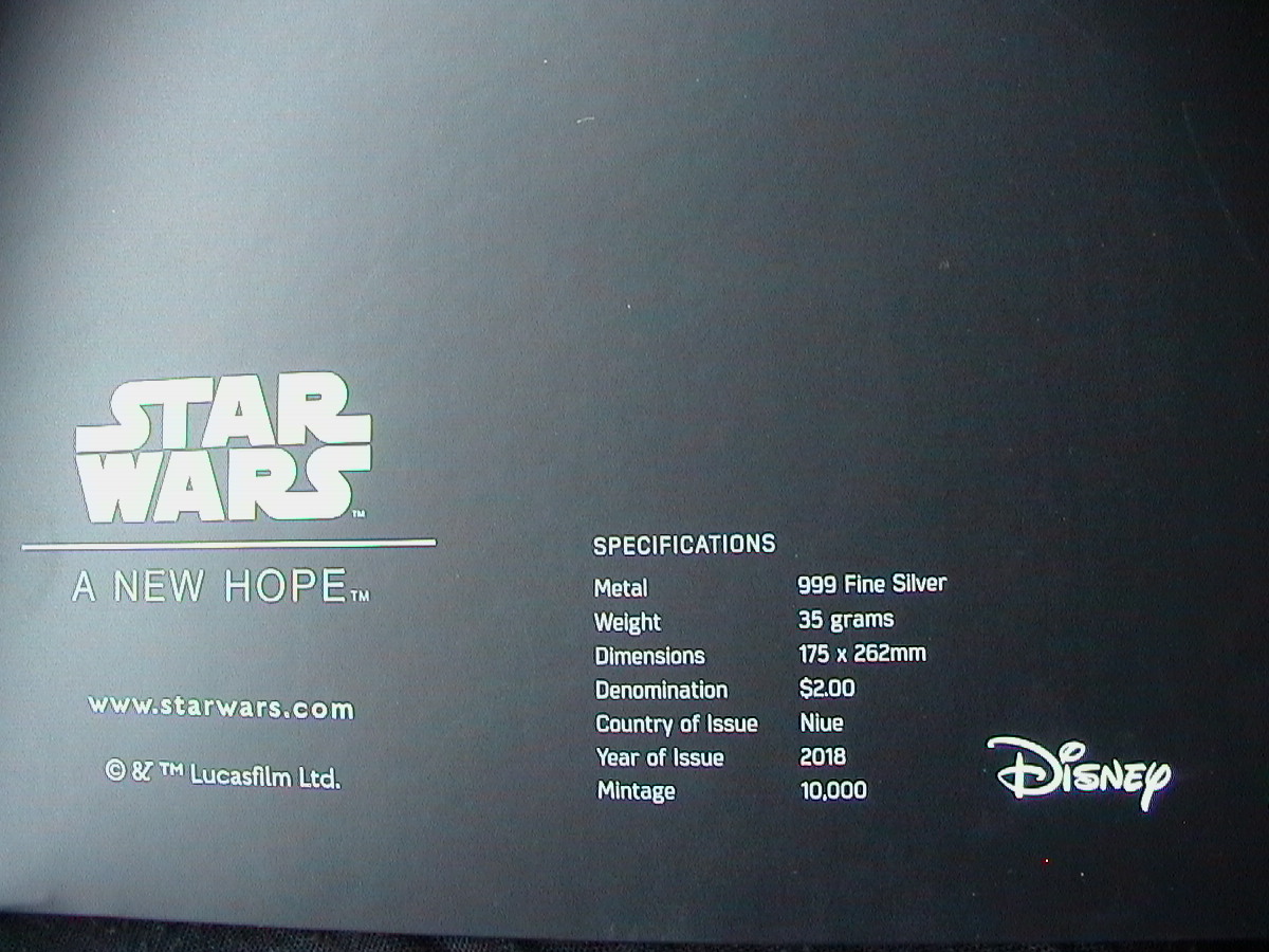 ch bin jedenfalls stolz, euch hier die Star Wars New Hope in Farbe präsentieren zu dürfen. Es ist eine 35 Gramm schweres Münzblatt mit dem Nennwert 2 Niue Dollar. Der Mint wunderschön gelungen, wie ich finde.
