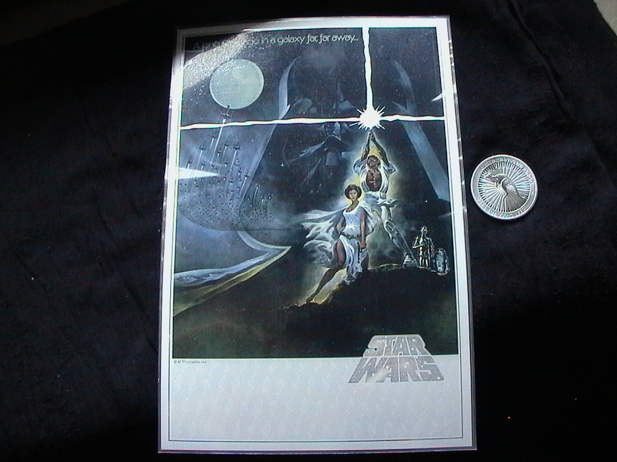 ch bin jedenfalls stolz, euch hier die Star Wars New Hope in Farbe präsentieren zu dürfen. Es ist eine 35 Gramm schweres Münzblatt mit dem Nennwert 2 Niue Dollar. Der Mint wunderschön gelungen, wie ich finde.