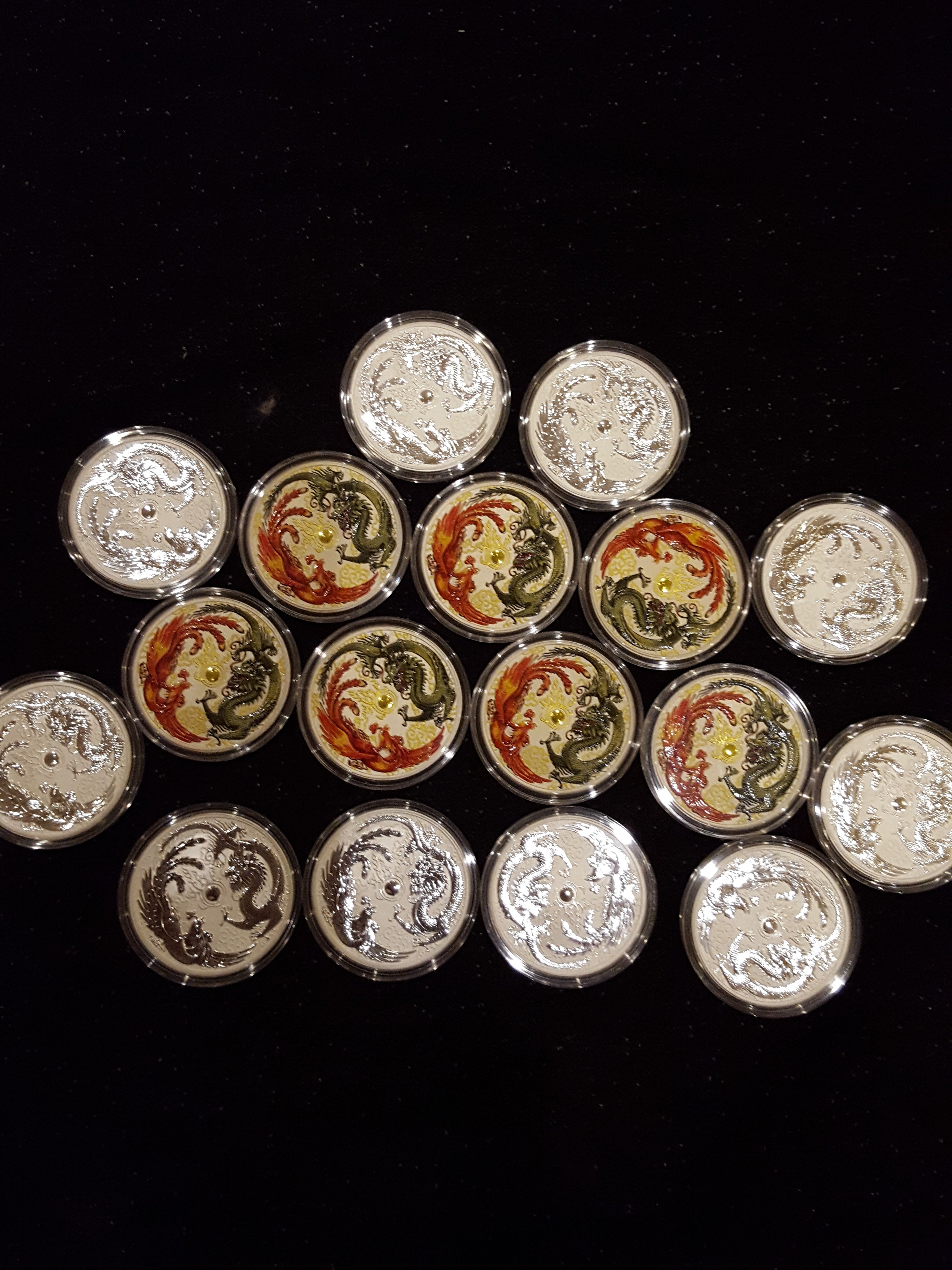 Um mal wieder auf Münzen zurückzukommen...... Felix hat sie irgendwo schon mal reingestellt, ich greif das nochmal auf. Das hier sind die australischen Drachen&Phoenix 2017, gerne auch die Drachen und Phönix für Arme genannt, also wie geschaffen für mich