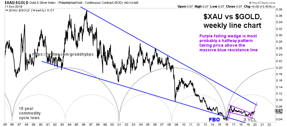 $GDX dailySaid 5 posts down for GDX - "As said, very few days left for the DC decline since we are very late in DC, i.e. should get DCL very soon here, maybe at pink line.".Now at my pink line plus tagging my green pm rounded bottom/cup. We have a cup & handle in the making.