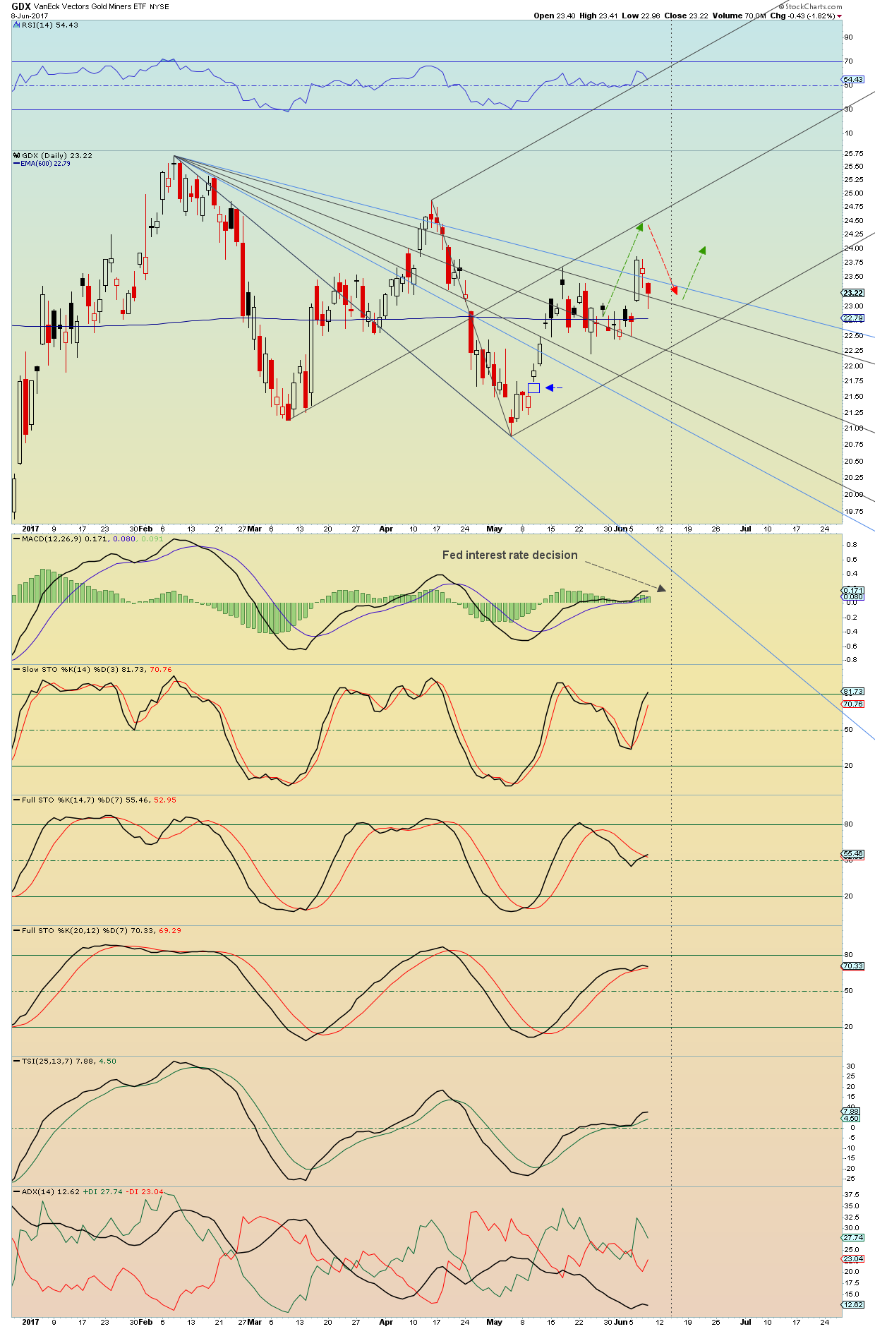I drew the arrows on the following chart 5 days ago but, as you can see, GDX is making up for lost time:
