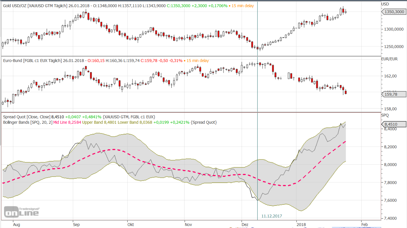 Zurzeit bin ich Gold/Silber long / Bund short bzw. Gold/Silber long / T-Bond short. -