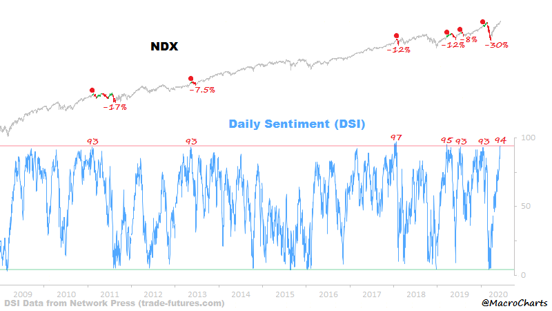 https://twitter.com/sentimentr…tatus/1276907092226555905Traders are throwing caution to the wind amidst the mad scramble for everything GROWTH:The MSCI World Growth/Value ratio's 14 month RSI is at its *highest level* ever! (higher than in 2000 and 2007)Growth & tech seems at risk of a big shakeout here - remain on high alert.