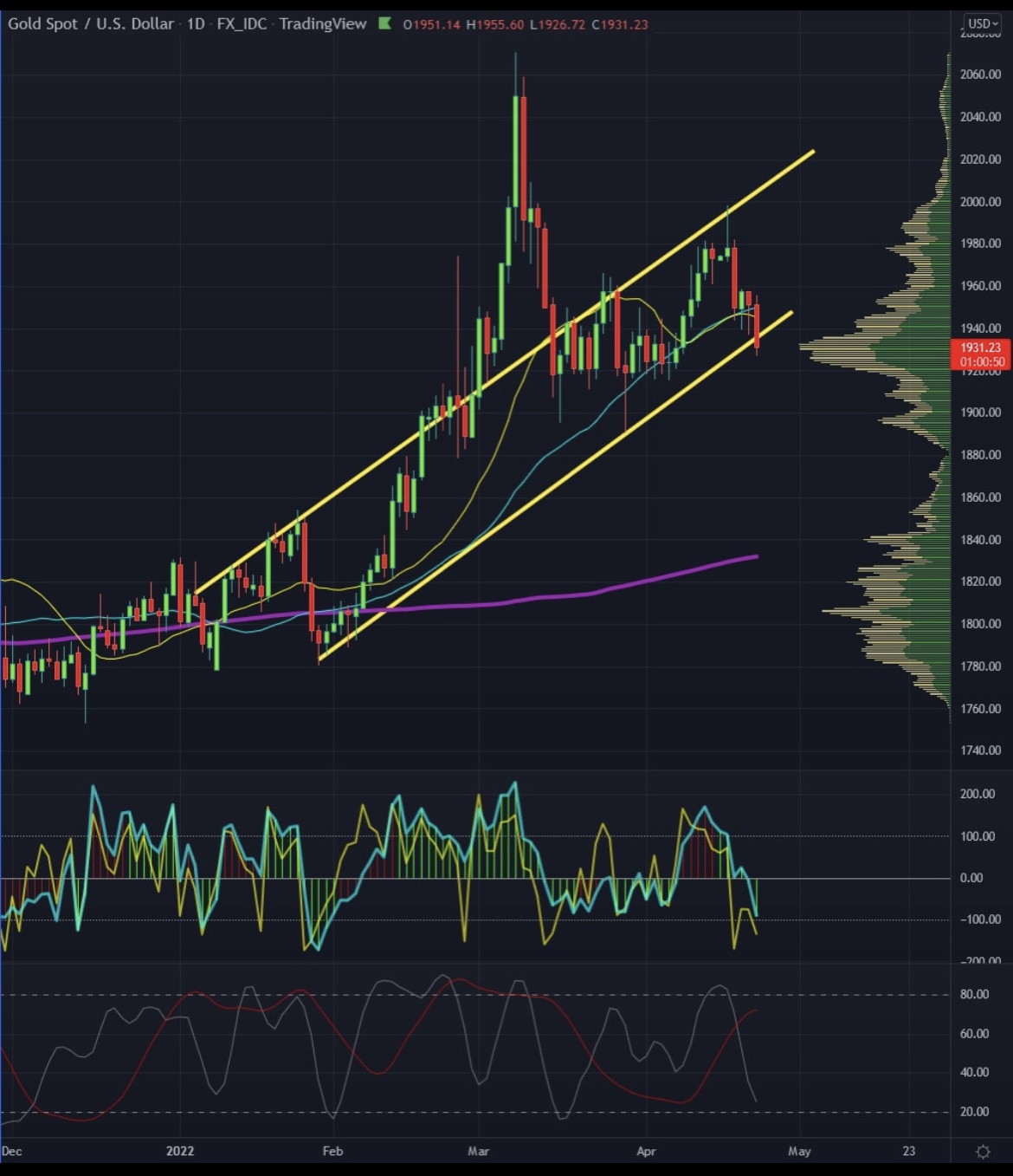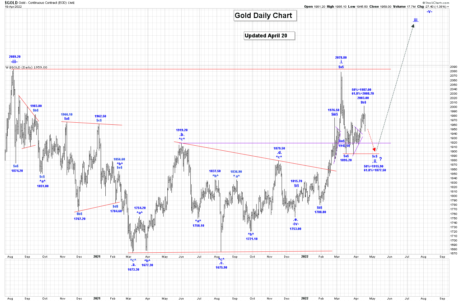 Das wären noch 3,44 % bis dahin. Geht man von einem Hebel von ca. 2,75 aus, wären das noch ca. 1,25 % beim Goldpreis. Das wären in etwa 1.906 $.