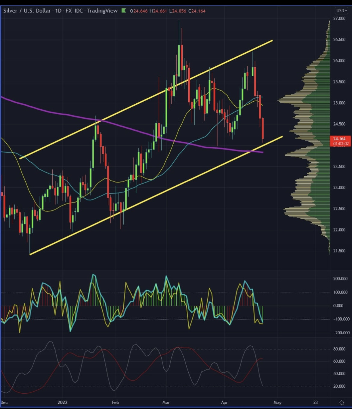 Geht man beim Silber von einem Hebel von ca. 2 aus, wären das noch ca. 2,5 %, was wiederum ca. 23,50 $ bedeuten würde.
