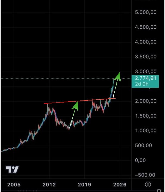 Interessant, genauso hab ich das auch mal beschrieben. Allerdings nur bis 5.000 $ in etwa. Aber vor allem das mit dem Januar und bis ca. April/Mai ca. 3.100 $ dürfte wohl als nächstes anstehen.