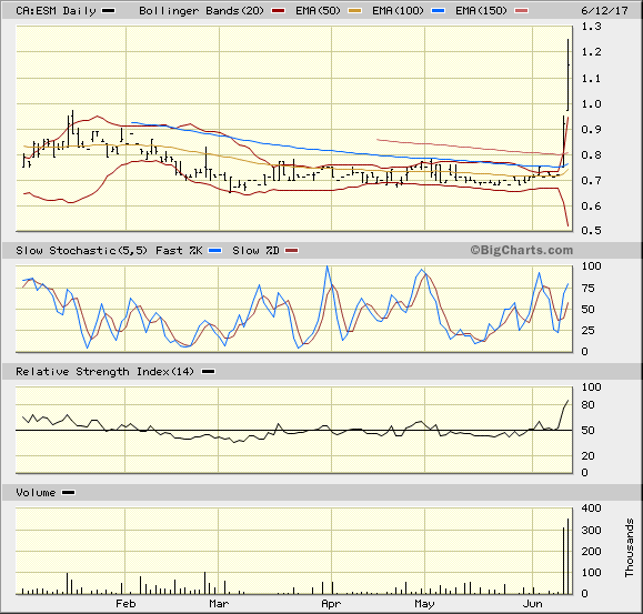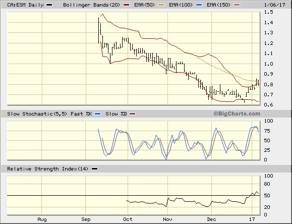 Es sind aktuell ca. 50 Millionen Aktien ausstehend, Schlusskurs T.ESM vom 6.1.2017 CAD 0.8.