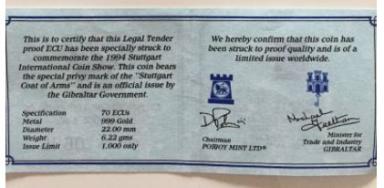habe zwei Goldmünzen Gibraltar Elizabeth II 1993 und 1994 angeboten bekommen.
