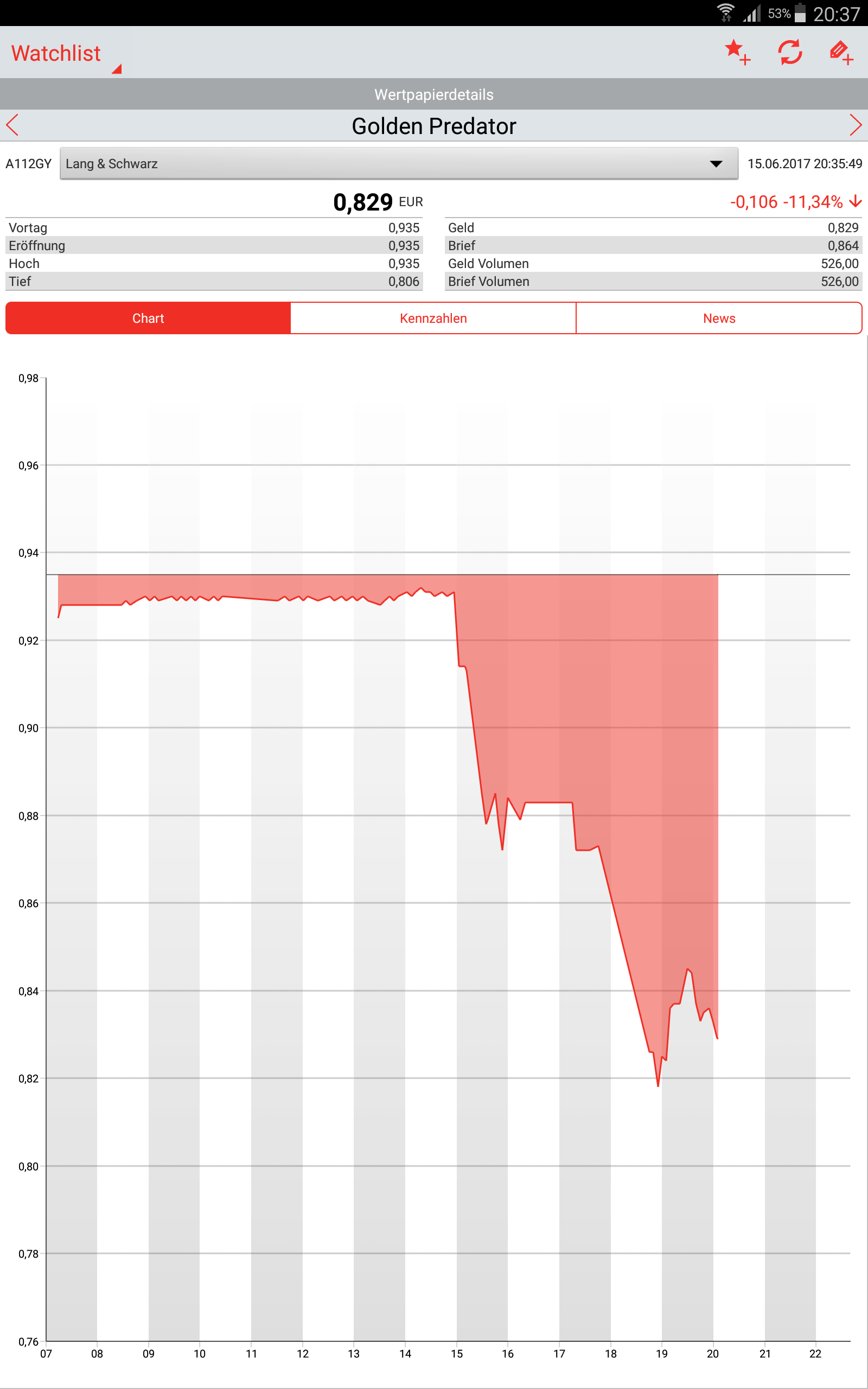 • Ich habe heute zu 0,94 Eurocent aufgestockt,