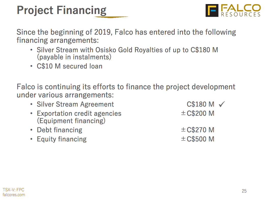Der Rest soll durch den Silver-Stream (180 Mio. C$) und durch Schulden (470 Mio. C$) finanziert werden.