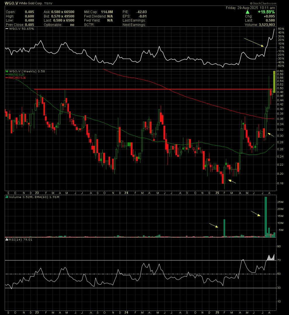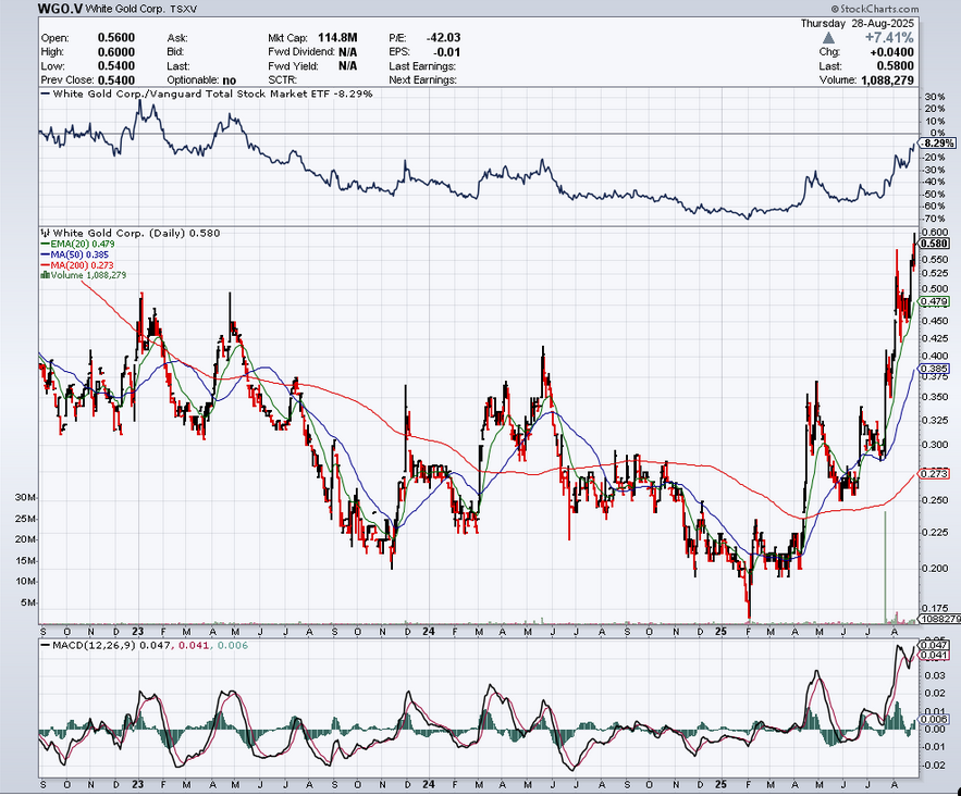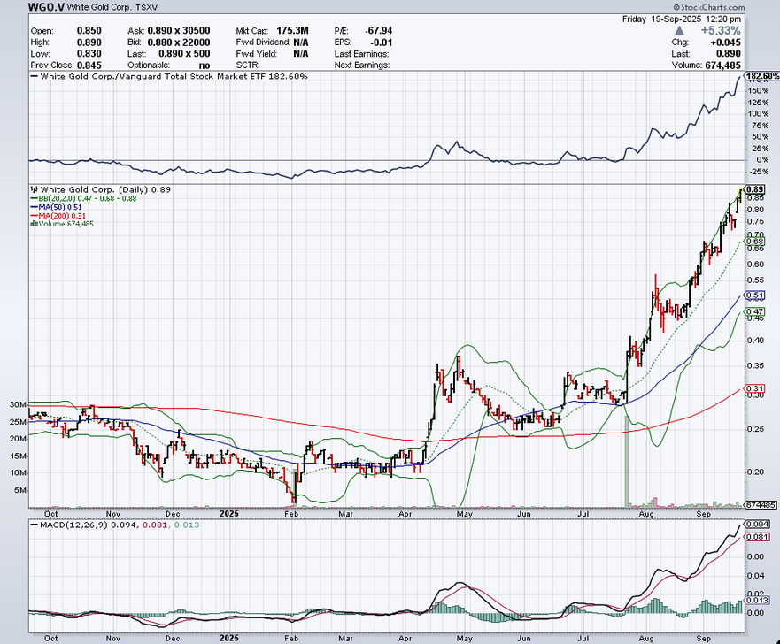 White Gold Corp. gibt eine Steigerung der angezeigten Ressourcen um 44 % auf 1.732.300 Unzen Gold und eine Steigerung der abgeleiteten Ressourcen um 13,4 % auf 1.265.900 Unzen Gold in seinem Flaggschiffprojekt White Gold im kanadischen Yukon bekannt