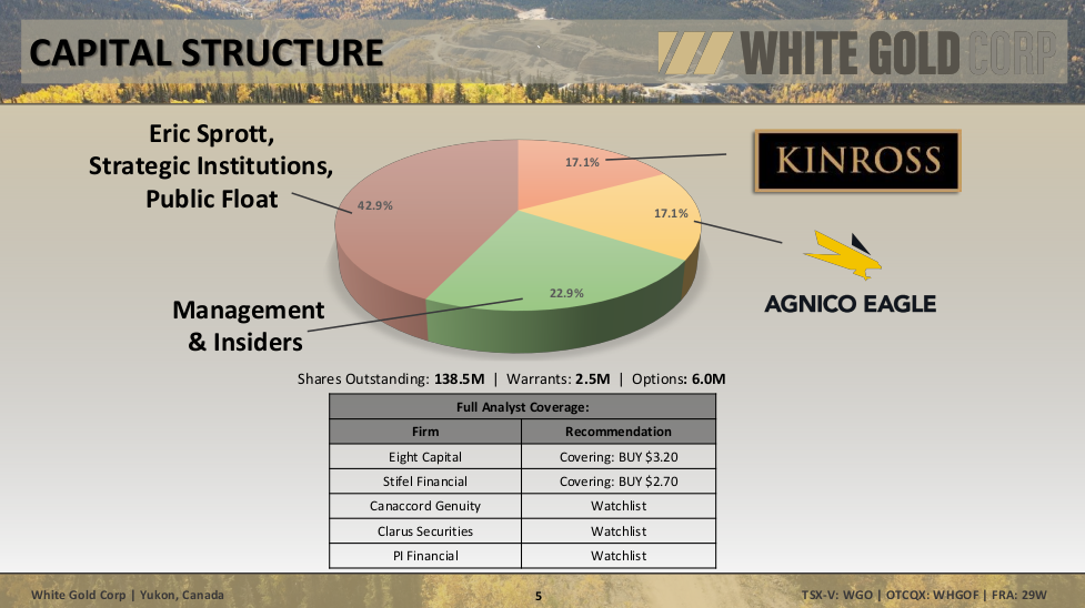 "White Gold Corp. wird eine Investition von 9 Mio. CA$ durch den strategischen Partner und Investor Agnico Eagle Mines Ltd. für Betriebskapital und allgemeine Unternehmenszwecke verwenden. Die Transaktion hat aber noch einen weiteren Vorteil: Sie verschafft White Gold Zugang zu einem enormen Maß an Fachwissen in allen Bereichen des Bergbaus.