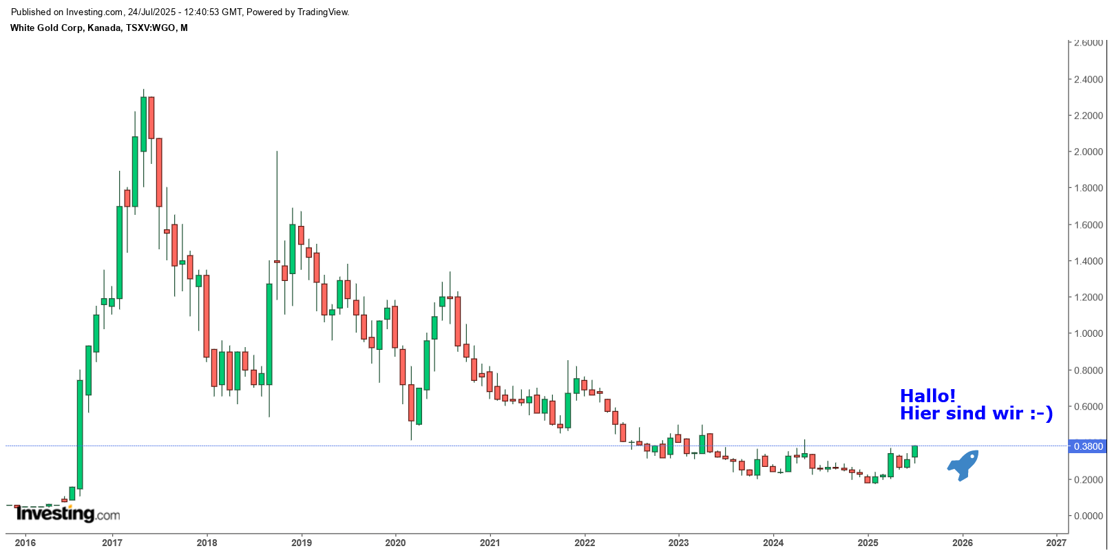 Zu den langfristigen Aussichten von White Gold für den White Gold District sagte CEO D'Onofrio: "Als Explorationsunternehmen wäre es die ideale Vision und der Traum des Unternehmens, den District weiterhin zu besitzen, Entdeckungen zu machen und diese auf individueller Basis zu verwerten, um den voraussichtlichen Wert zu optimieren."