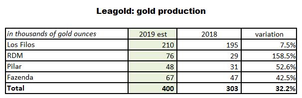 Leagold expects to produce 380,000 to 420,000 oz in 2019 at AISC of $920 to $970 per oz. Beyond 2019, Leagold’s internal growth projects have the potential to increase production to 700,000 oz per year.30% Steigerung von 2018 auf 2019!