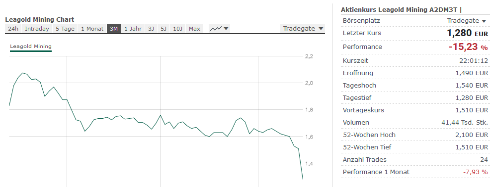Wie wir im folgenden Link erkennen können, sind im vergangenen Quartal AISC von 63,665 Mio. USD angefallen, und es verbleibt eine Gewinnspanne von 23,064 Mio. USD, was brutto also 0,08 USD pro Aktie entspricht. Vielleicht klingt es etwas naiv, aber ich rechne einfach mal aufs Jahr hoch und sehe 0,32 USD Gewinn pro Aktie bei einem Kurs von aktuell ca. 1,58 USD. Das finde ich durchaus attraktiv, und daher verkaufe ich auch jetzt nicht.