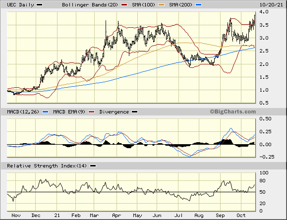 UEC heute wie die Peers mit kräftigem Kursauftrieb extrem dicht am 9 Jahres Hoch + 7,1 % auf 3,65 $.